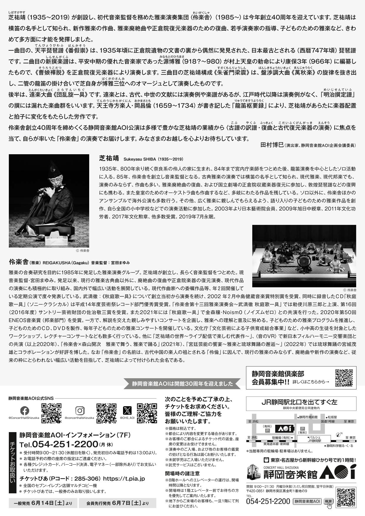 主 催 : 静岡音楽館AOI 指定管理者(公財)静岡市文化振興財団 |