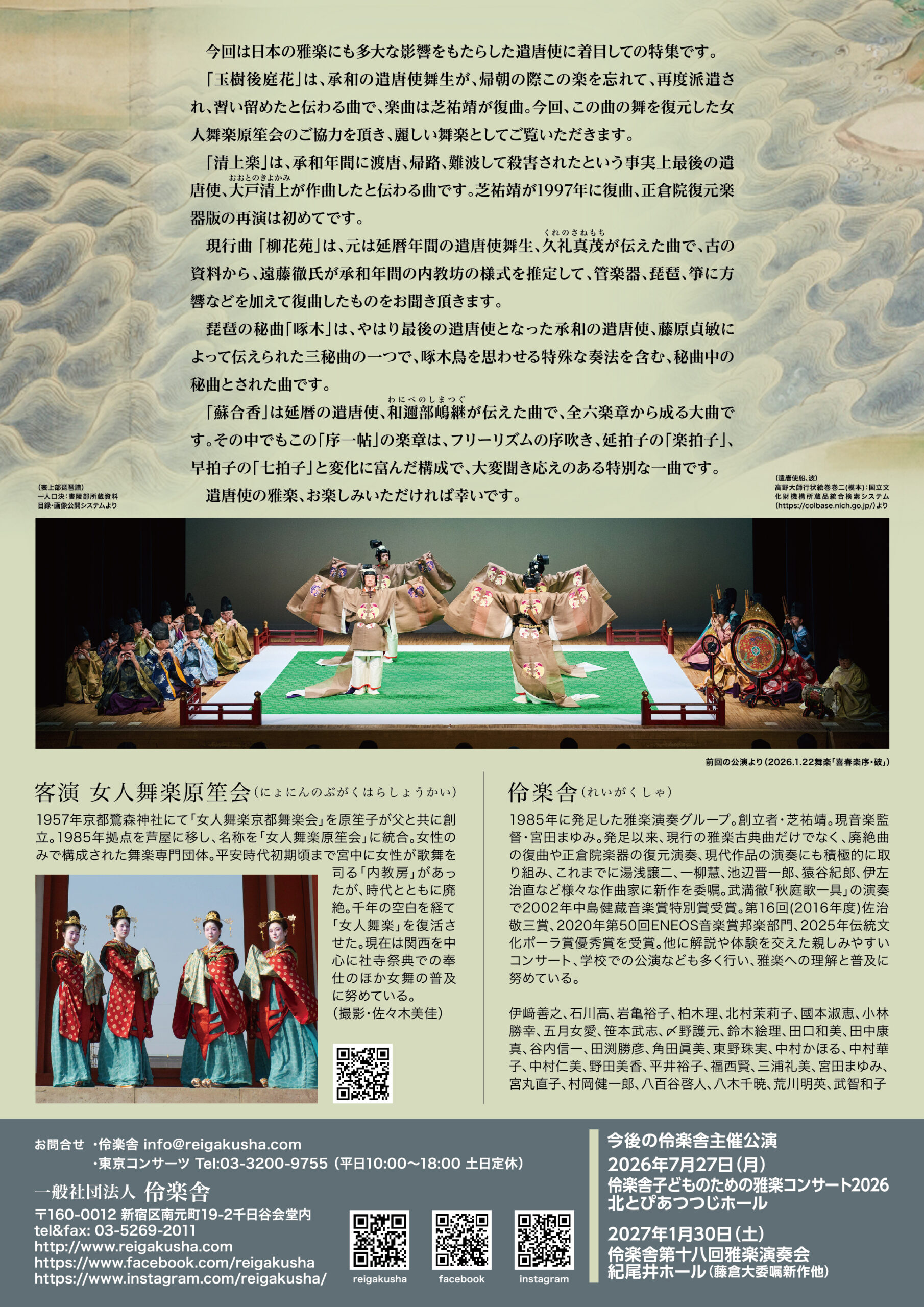 ・伶楽舎 info@reigakusha.com ・東京コンサーツ tel:03-3200-9755 (平日10時~18時 土日祝休)